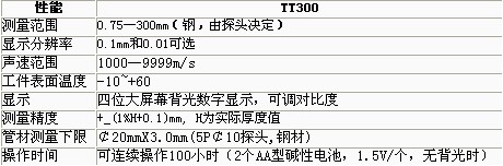 可選附件: 1、TT300/TT100A/TT310/TT320/TT340系列超聲波測(cè)厚儀探頭參數(shù) 2、耦合劑 3、通訊軟件 4、通訊電纜 5、打印機(jī)